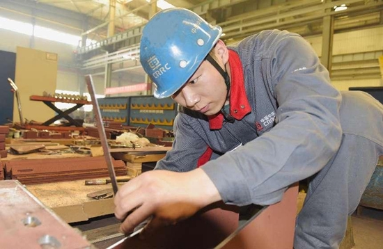 人民网石家庄5月1日电 (赵明妍)春末,循着一道“呲呲”的声响,走进中车齐车集团石家庄公司新制车间,刘志彬正一手举着防护罩,一手拿着电焊枪,蹲在两块钢板前进行焊接工作。焊枪和焊条此时就像裁缝手中的针和线,钢板很快被他缝制的“天衣无缝”。