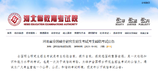 河北省全国硕士研究生招生考试考生诚信考试公告