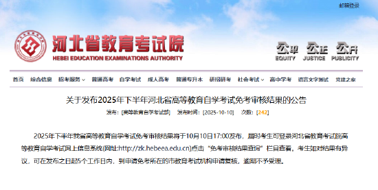关于发布2025年下半年河北省高等教育自学考试免考审核结果的公告