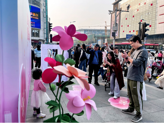 除了知识科普和产品体验,现场还设置了国风主题打卡拍照点。粉白相间的海棠花与古色古香的背景相得益彰,游客们手持国风小道具,在这里拍照留念,记录下美好的瞬间。照片中,人们的笑容与海棠花的娇艳相互映衬,构成了一幅幅生动的春日画卷。不少游客将照片分享到社交媒体上,进一步扩大了活动的影响力。