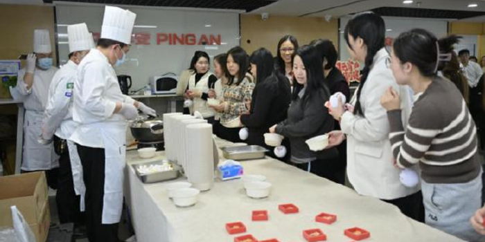 活动现场,“欢乐煮元宵”区域人气爆棚。一口口大锅热气腾腾,白白胖胖的汤圆在沸水中翻滚跳跃,氤氲的热气里满是幸福的味道。一碗碗热气腾腾的汤圆被送到员工手中,软糯香甜的口感瞬间驱散了工作的疲惫。大家聚在一起,品汤圆、话家常,在甜蜜的味蕾享受中,感受着平安大家庭的温暖与团圆,让“家”的氛围在职场中悄然蔓延。