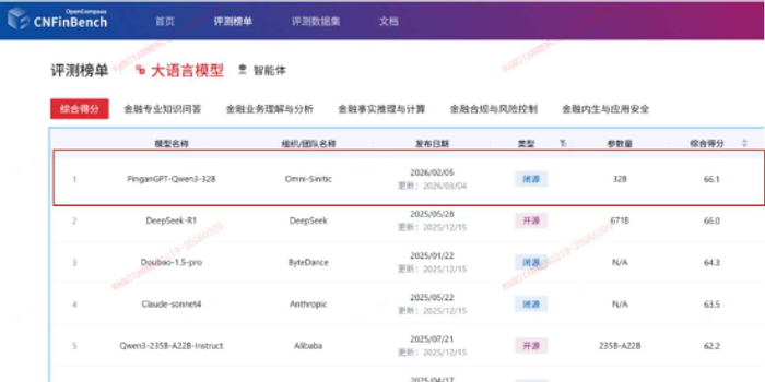 关注原标题:CNF in Bench公布大语言模型综合得分:中国平安金融大模型荣登第一名