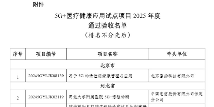 近日,工业和信息化部、国家卫生健康委员会联合公布《关于公布5G+医疗健康应用试点项目2025年度通过验收名单的通知》,由华北制药华维公司牵头建设的“京津冀5G云上健康管理系统” 成功通过验收,标志着公司在5G+智慧健康领域的探索实践获得国家级认可,为京津冀区域乃至全国智慧健康管理模式创新树立了典范。