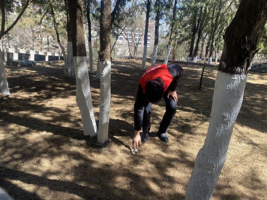 祭奠仪式结束后,志愿者们分散在陵园内,积极开展环保行动。他们走过烈士陵园各个角落,仔细清理纸屑垃圾,以实际行动表达对先烈的尊重与感恩,守护这片承载着历史记忆的净土。