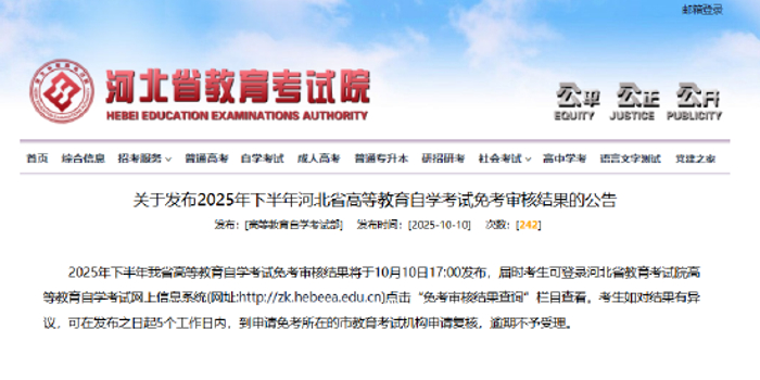 关注原标题:关于发布2025年下半年河北省高等教育自学考试免考审核结果的公告