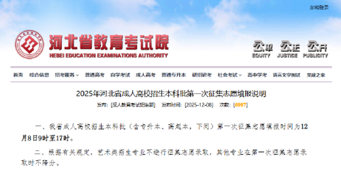 关注原标题:2025年河北省成人高校招生本科批第一次征集志愿填报说明