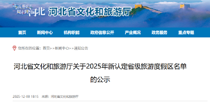 关注原标题:河北省文化和旅游厅关于2025年新认定省级旅游度假区名单的公示