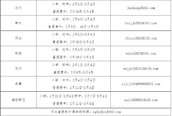 2025—2026学年河北省各市中小学寒假放假安排及监督举报邮箱