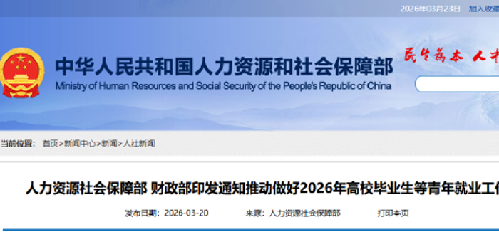 关注原标题:人力资源社会保障部 财政部印发通知推动做好2026年高校毕业生等青年就业工作